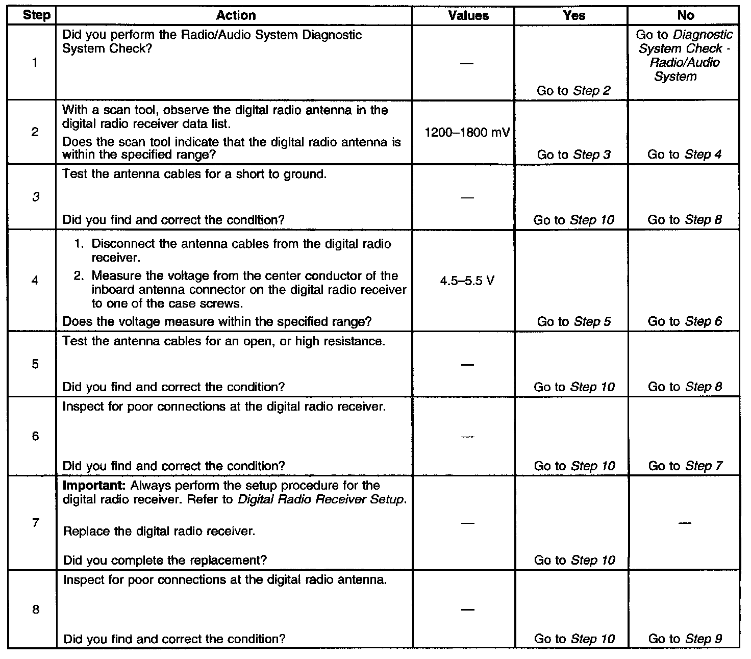 The digital radio receiver detects an antenna fault.