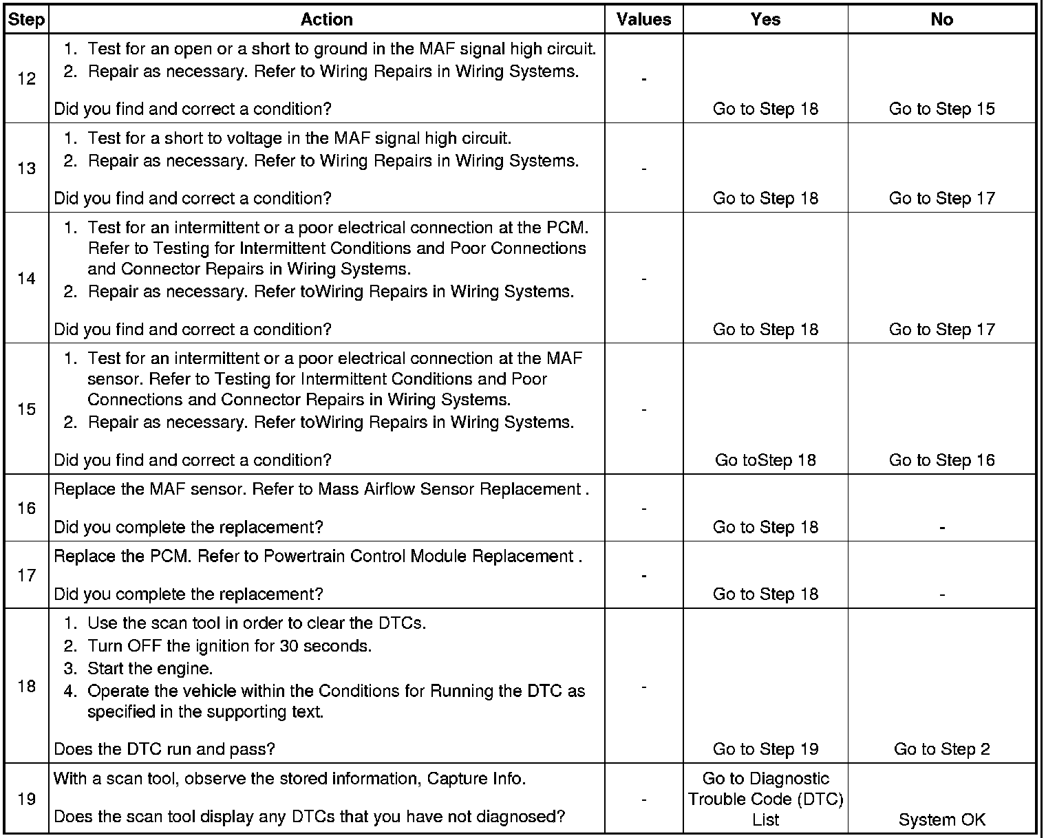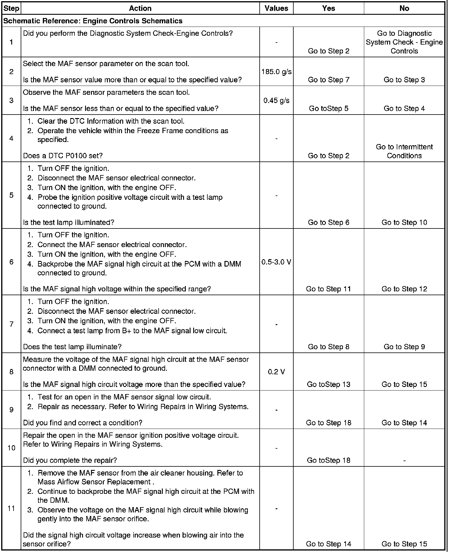 3. This step checks for a low input signal from the MAF sensor.
