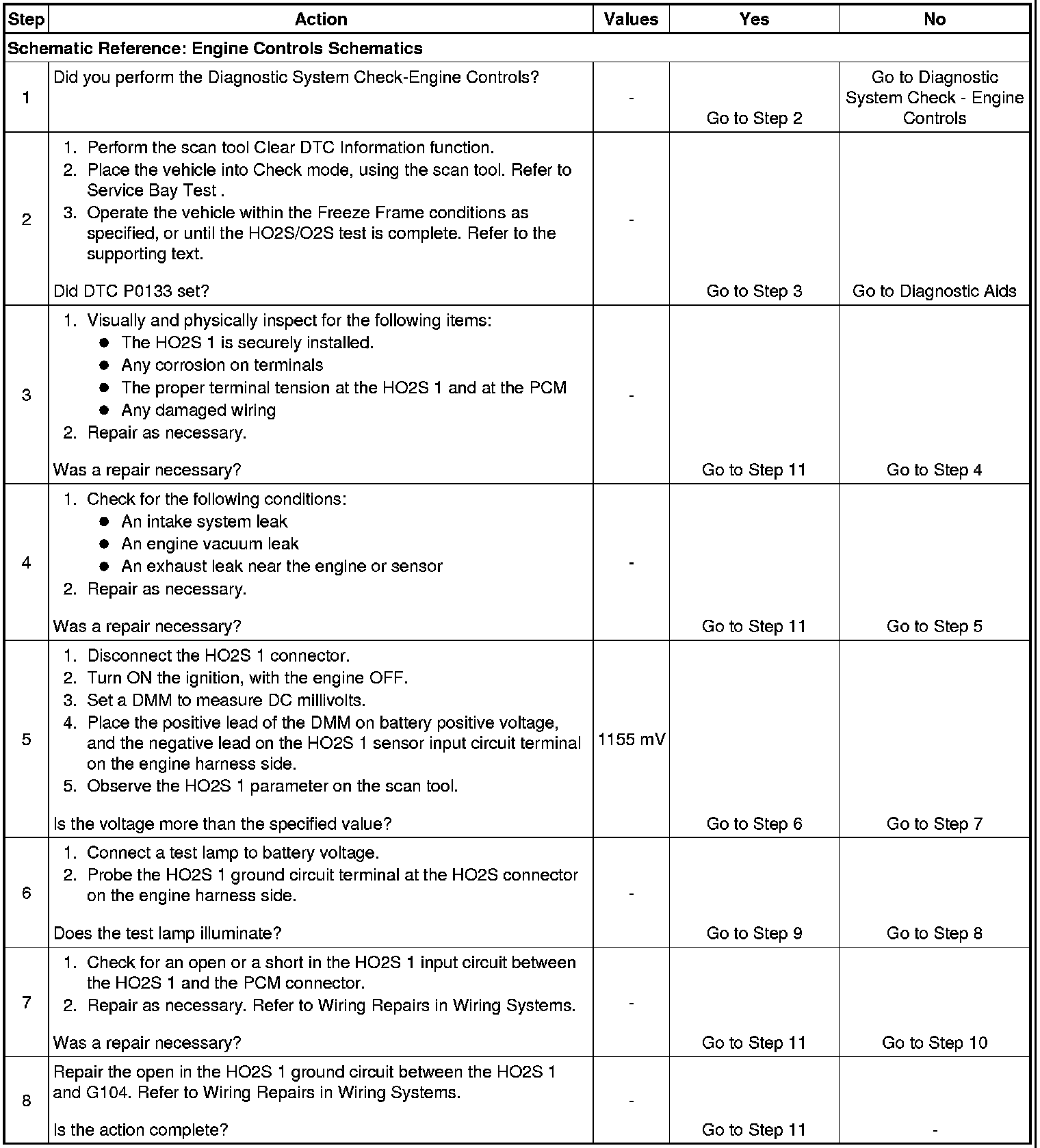 5. In this step the DMM is used as a low current voltage source taking the place of the HO2S. This step verifies whether the PCM is able to receive and process a signal from the HO2S 1.