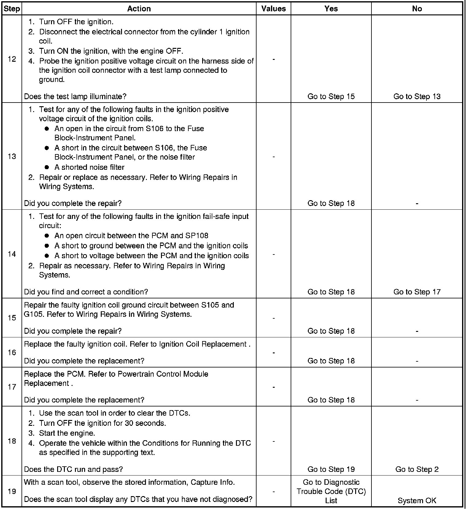 - An interruption of the ground circuit or voltage supply to the ignition coil will prevent a proper ignition event from taking place. A DTC P0351 through P0354 will set if there is a fault in any of the ignition coil circuits.
