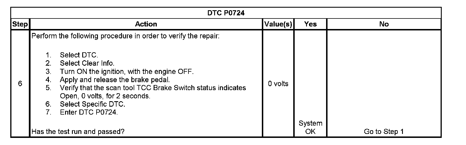 The PCM detects a closed brake switch circuit, 12 volts, without changing for 2 seconds and the following events occur eight times: