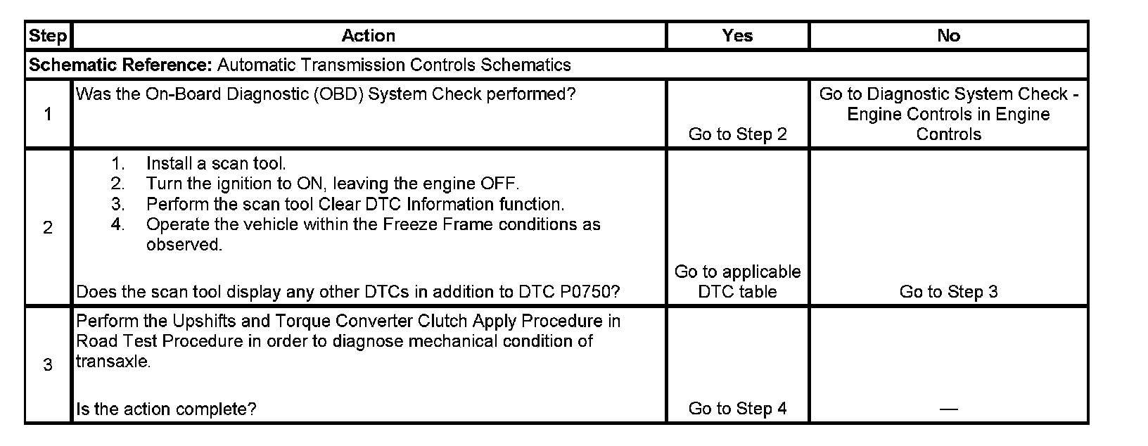 A DTC P0750 is stored and the Malfunction Indicator Lamp (MIL) is turned ON.
