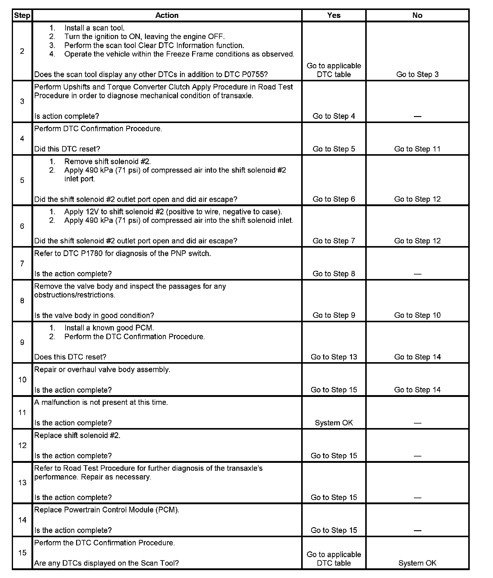 DTC P0755Test 1: