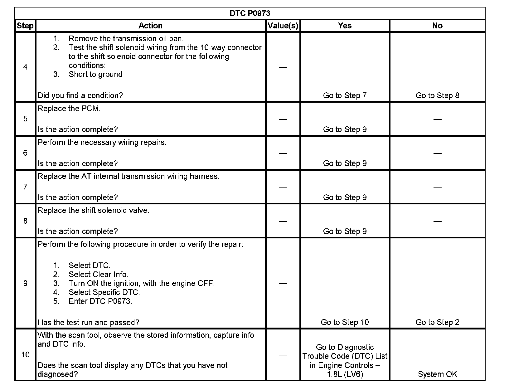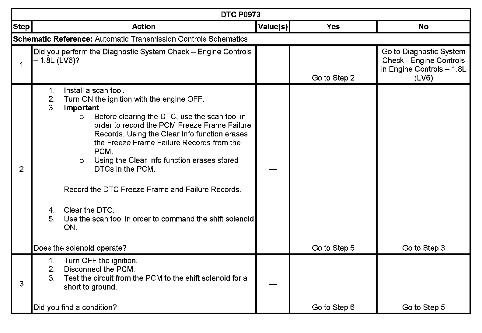 When the PCM detects a continuous short to ground in the shift solenoid valve #1 circuit, then DTC P0973 sets. DTC P0973 is a type B DTC.