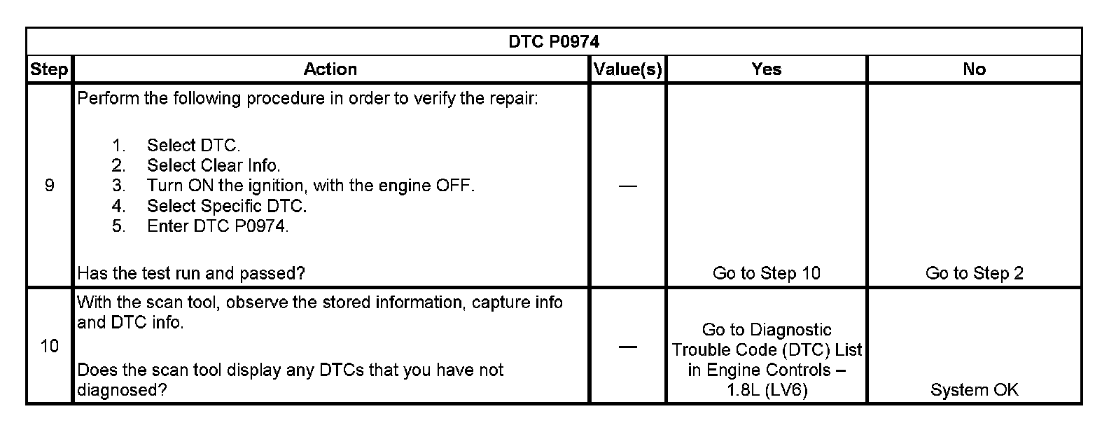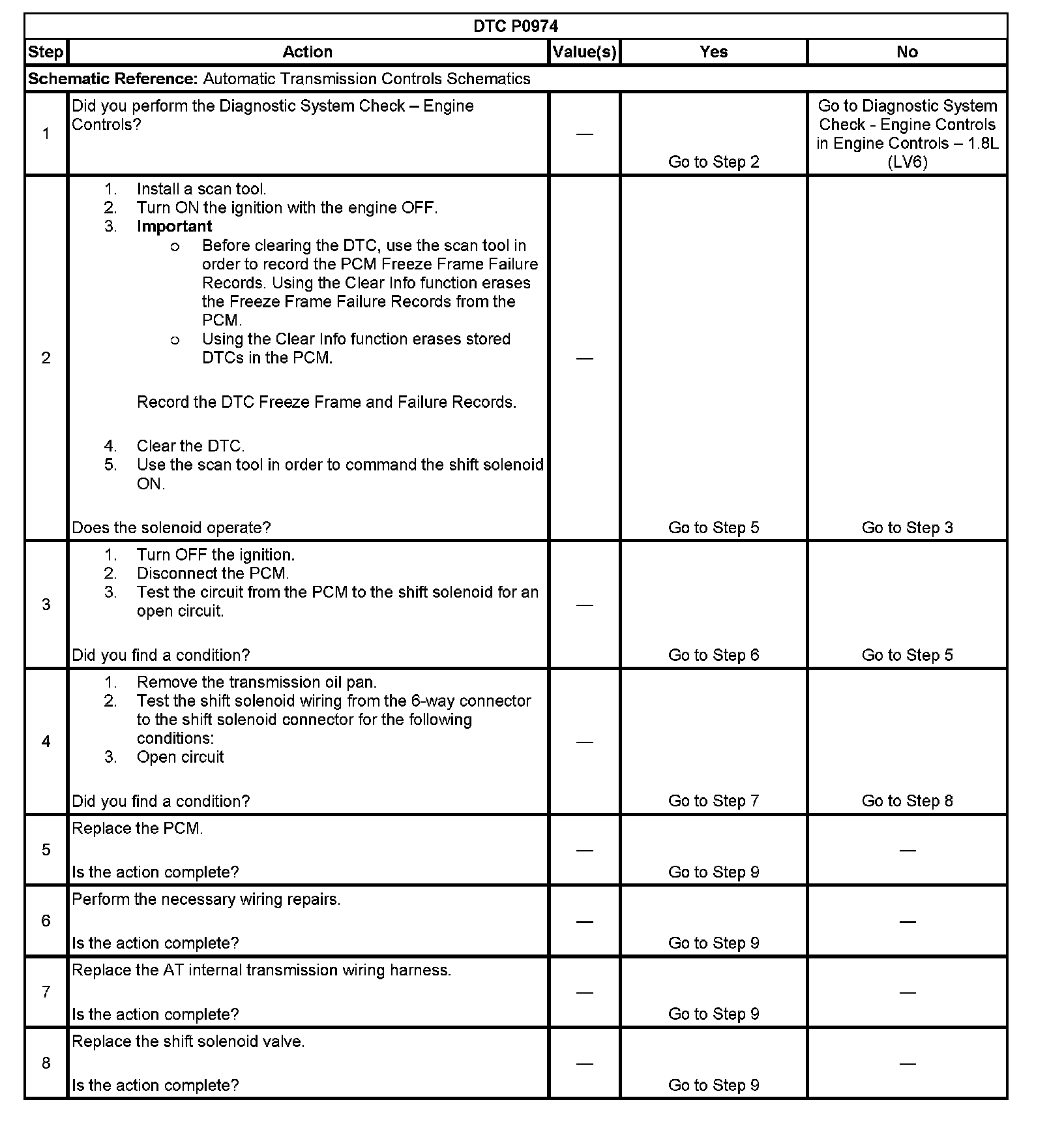 When the PCM detects a continuous open circuit in the shift solenoid valve #1 circuit, then DTC P0974 sets. DTC P0974 is a type B DTC.