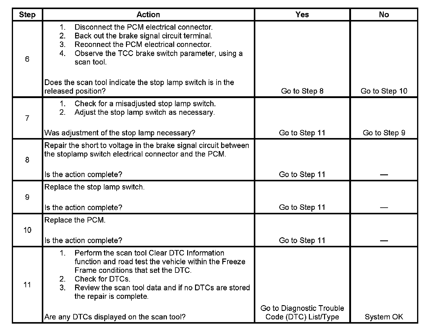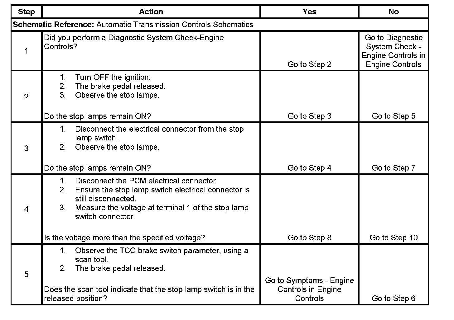 6. This step will determine whether there is a short to voltage within the PCM, or a short to voltage in the circuit between the PCM and the stop lamp switch.