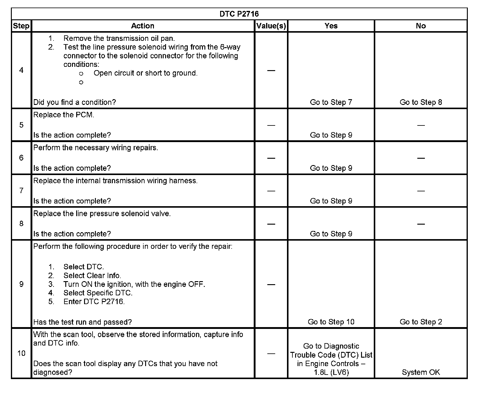 ^ The PCM stores DTC P2716 in PCM history.