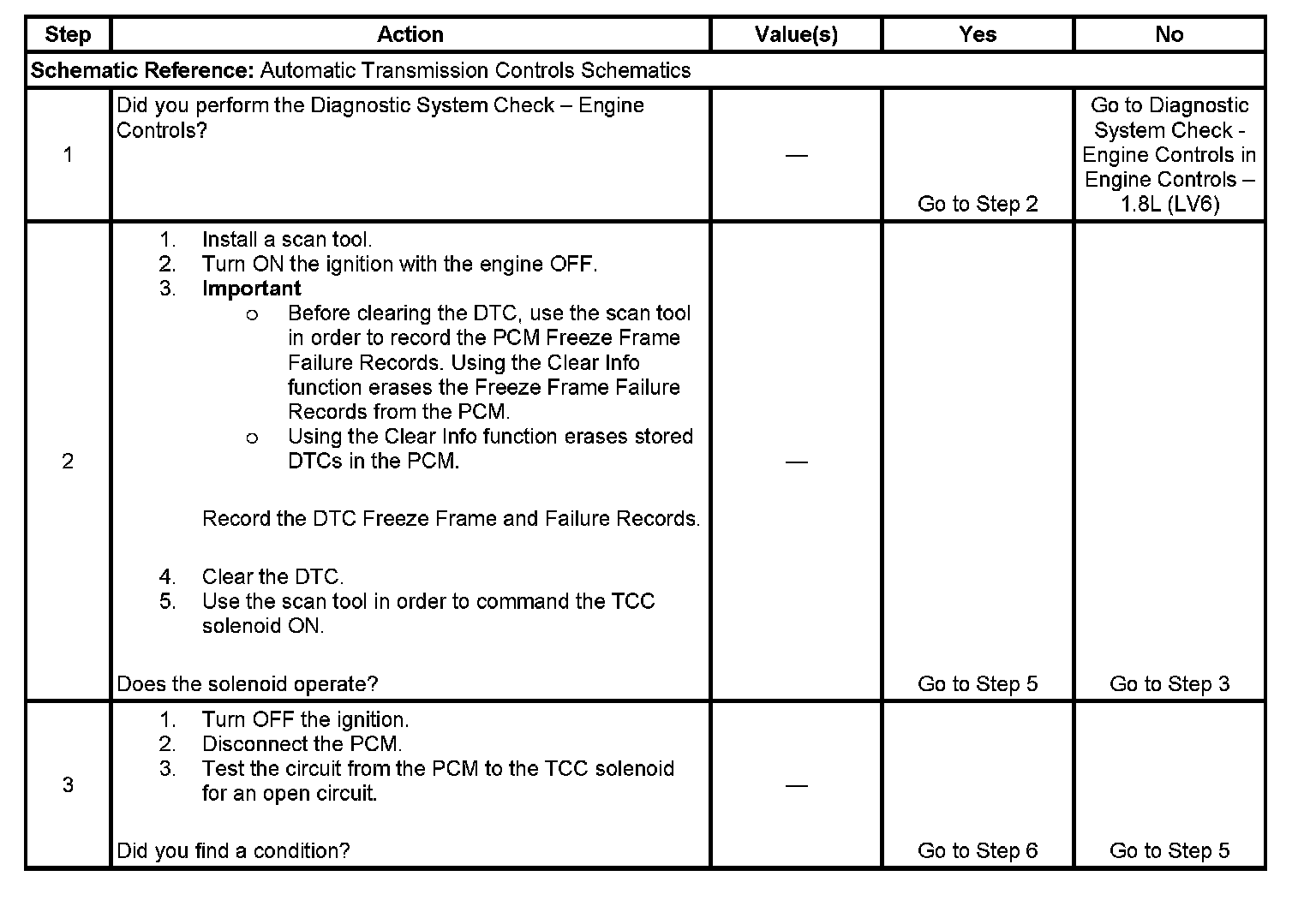 ^ The PCM detects an open in the TCC solenoid circuit when the solenoid is commanded ON or OFF.