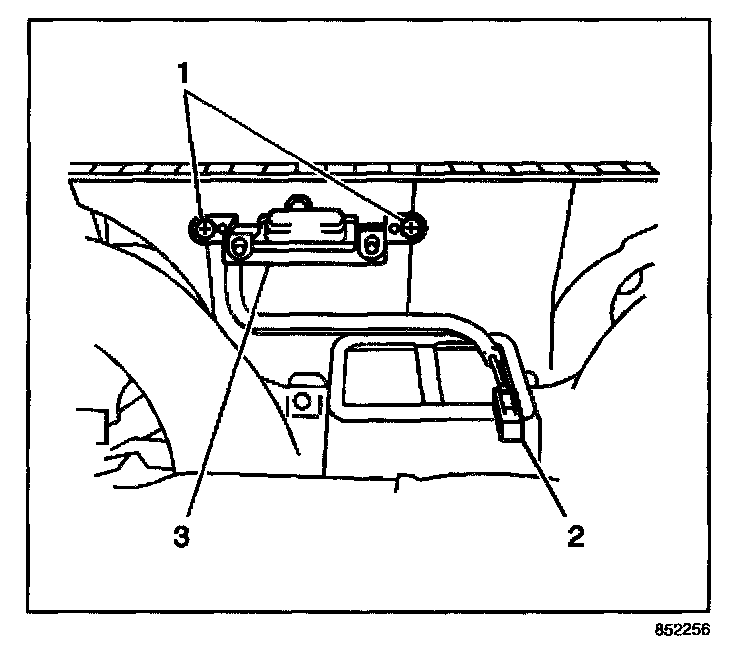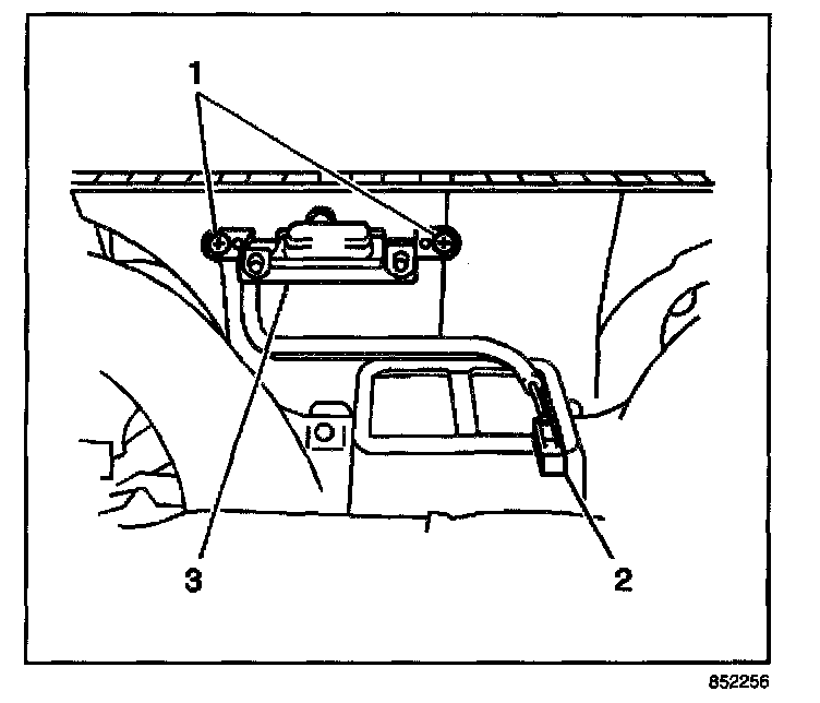 1. Install the GPS antenna assembly (3) to the vehicle. Secure the GPS antenna assembly with the 2 screws (1).