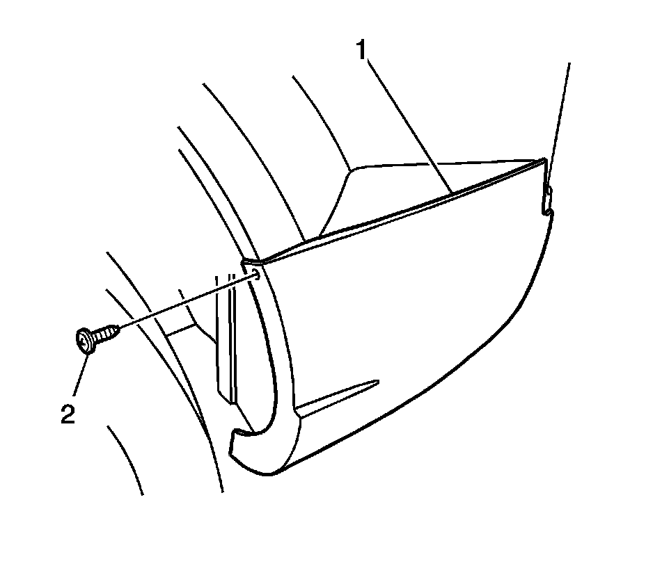 5. Remove the screw (2) from the front bumper fascia extension (1).