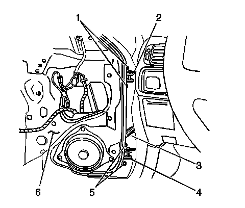 14. Remove the front lower door speaker. Refer to Speaker Replacement - Front Lower in Entertainment.