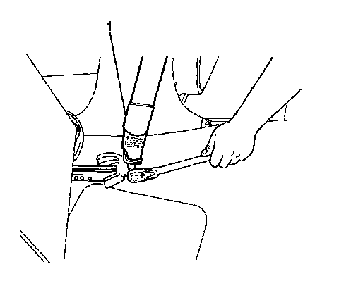 13. Remove the front seat belt (1) lower anchor bolt from each side of the vehicle.