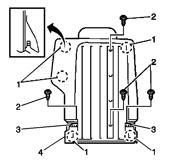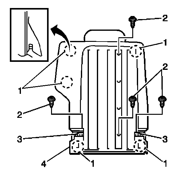 3. Remove the 4 screws (2) from the rear seat back trim panel (4).