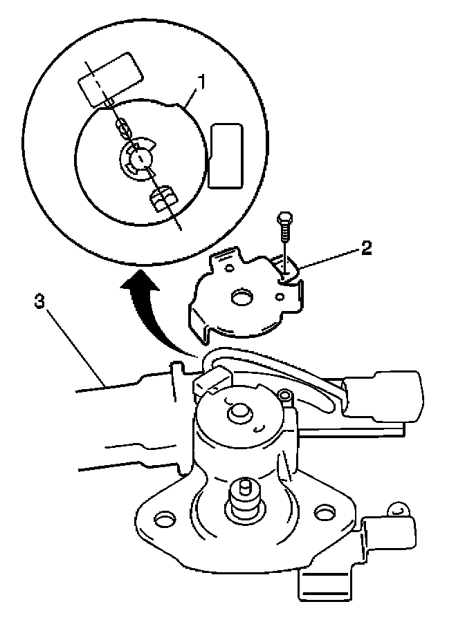 8. Install the cam plate cover (2) to the sunroof motor. Secure the cover with 1 screw.