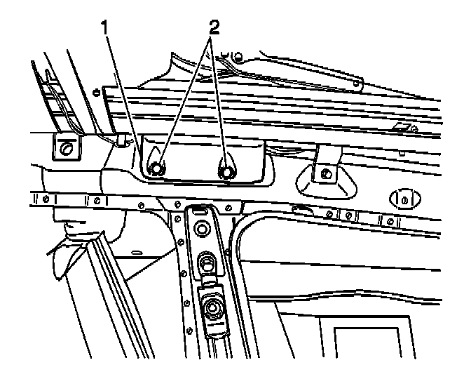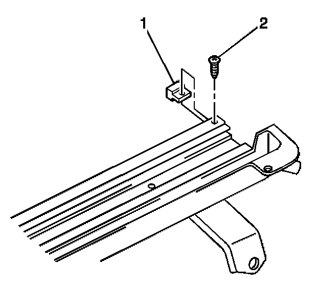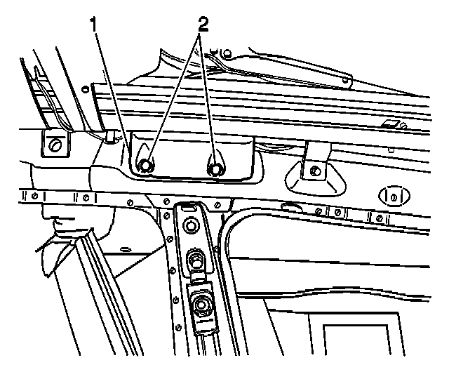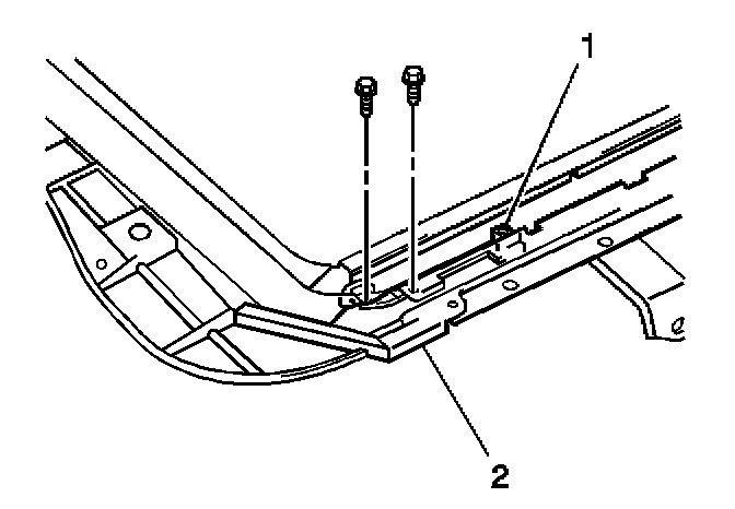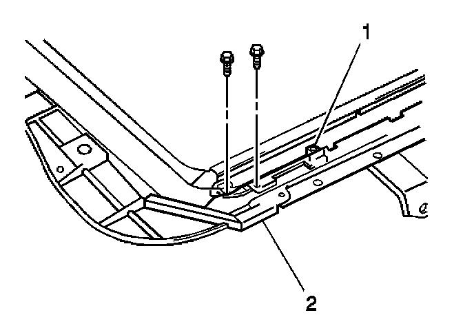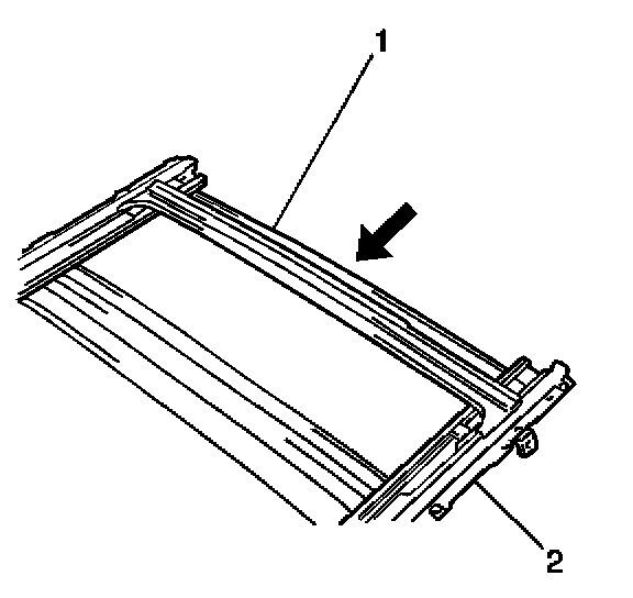 5. Install the sunroof housing rear support (1) by sliding the support into the sunroof housing (2).