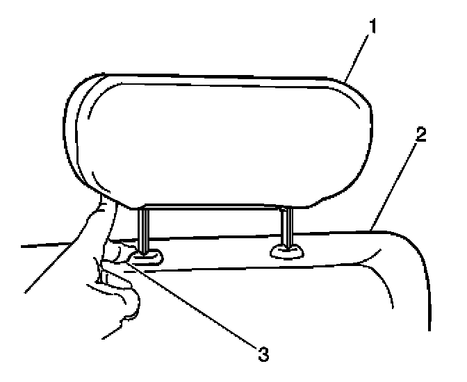1. Push in the tab (3) on the head restraint guide.