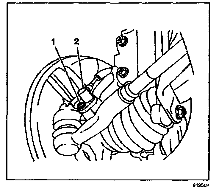 4. Remove the wheel speed sensor retaining bolt (1) and remove the wheel Speed sensor (2) from the steering knuckle.