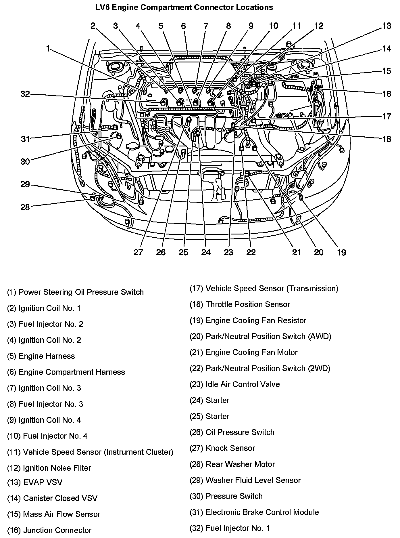 Engine Compartment Connector Locations: