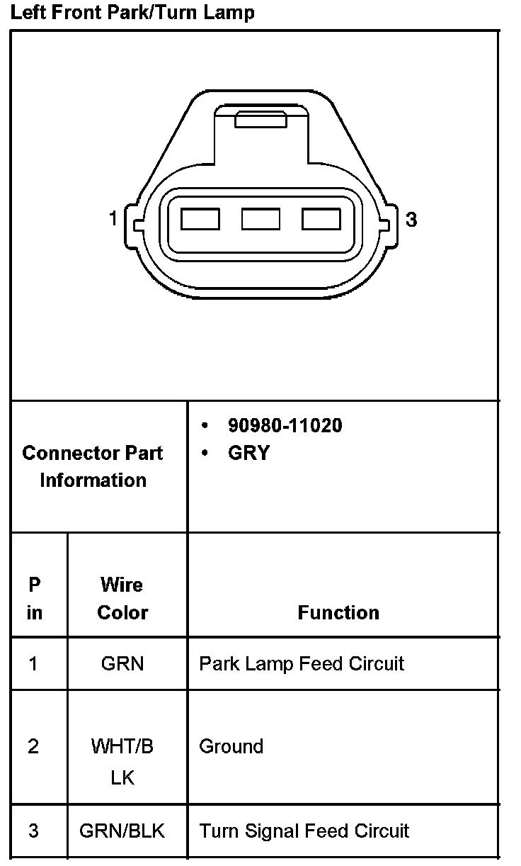 Right Front Park/Turn Lamp: