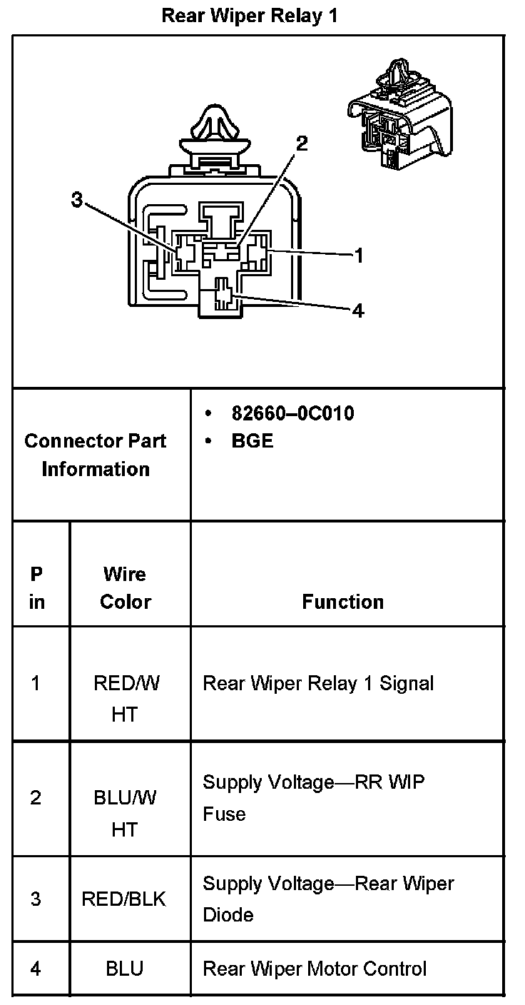 Rear Wiper Relay 1: