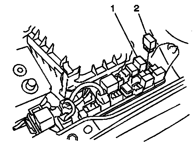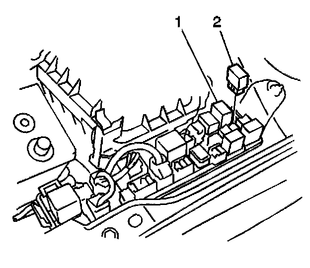 2. Remove the fan no. 1 relay (2) or the engine main relay from fuse and relay block.