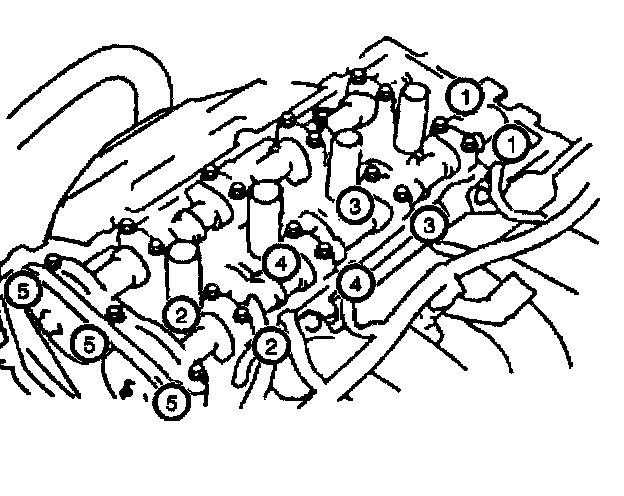 ^ Tighten the camshaft bearing cap bolts in the sequence shown to 13 Nm (10 ft. lbs.).