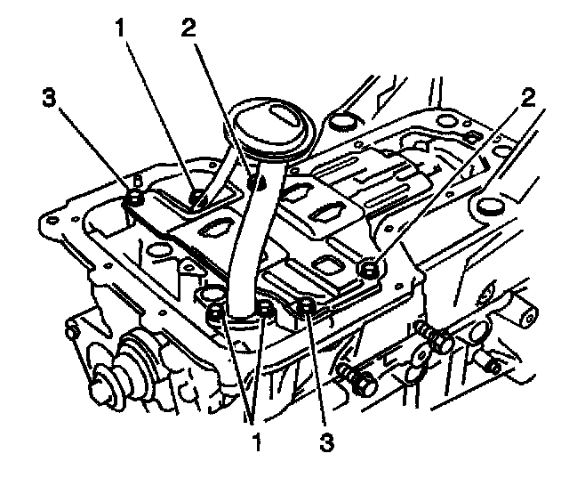 2. Install 2 oil pan baffle nuts (3).