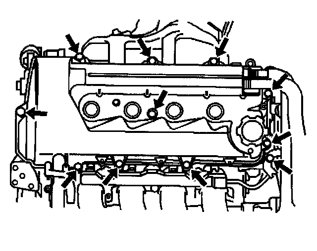 Remove the 9 cylinder head cover bolts and wire harness protector.