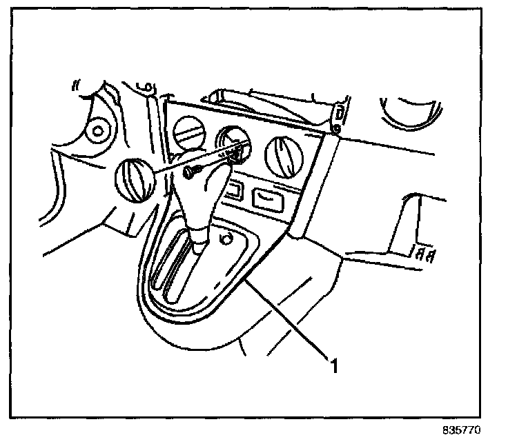 4. Remove the center console and heater control trim panel (1).