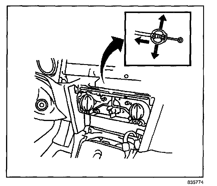 5. Disconnect the mode control cable from the HVAC control unit.