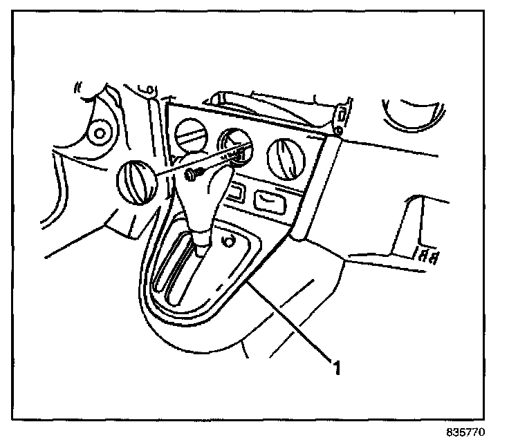4. Remove the center console and heater control trim panel (1).