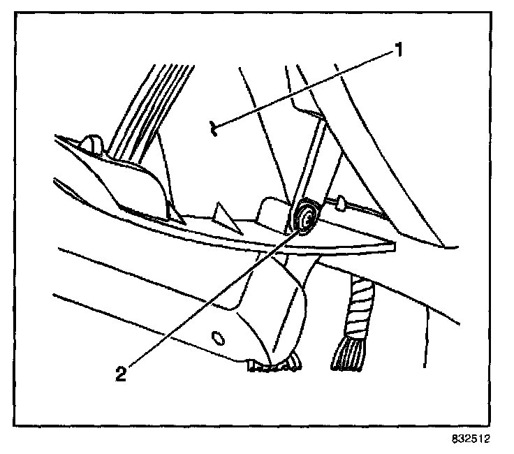 2. Remove the screw (2) from the right side of the compartment door (1).