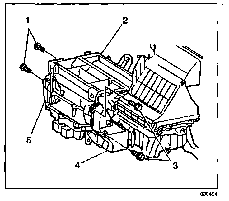 5. Remove the outlet duct (4) from the HVAC module (2).