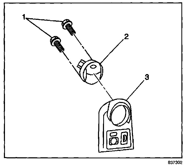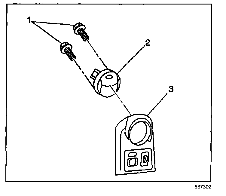 1. Install the deflector assembly (2) to the IP trim plate (3). Secure the deflector with the two screws (1).