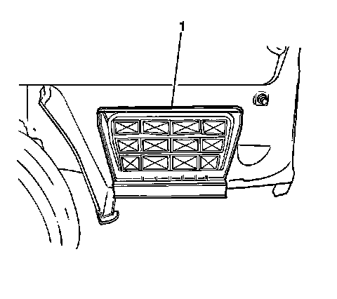 1. Install the quarter outer panel pressure relief valve (1). Ensure that the retaining tabs are fully engaged.