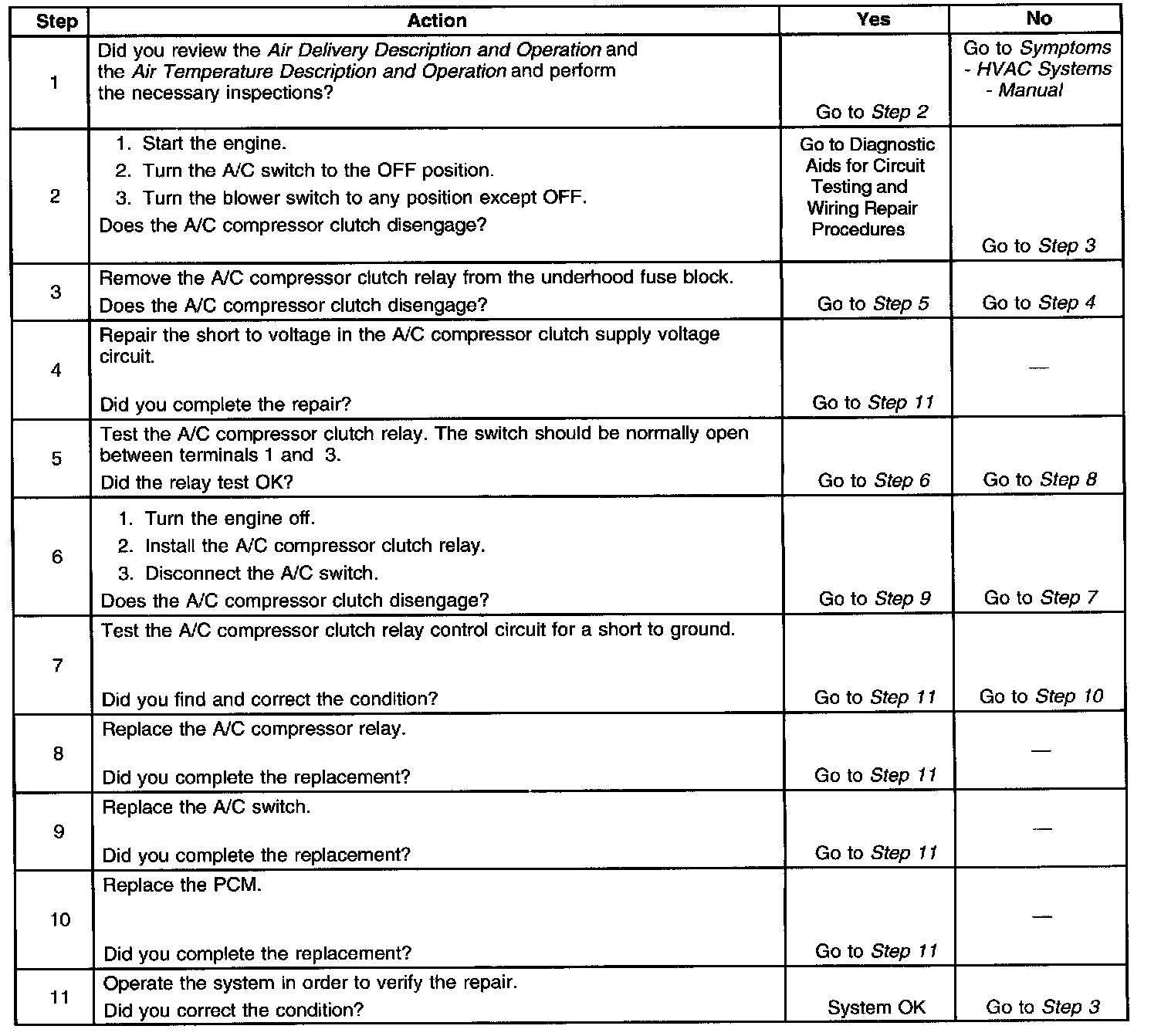 Symptoms - HVAC System - Manual