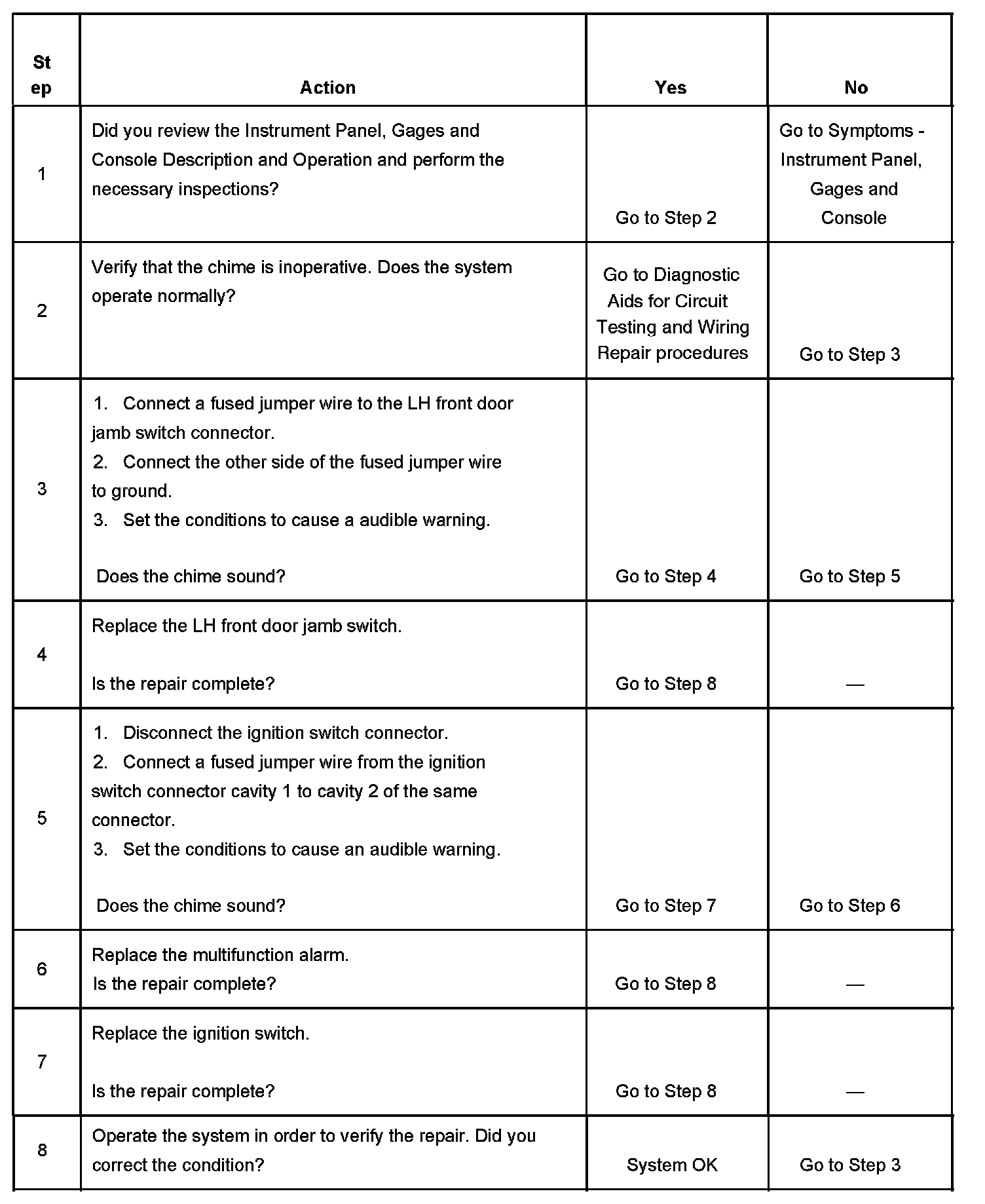Chime Inoperative