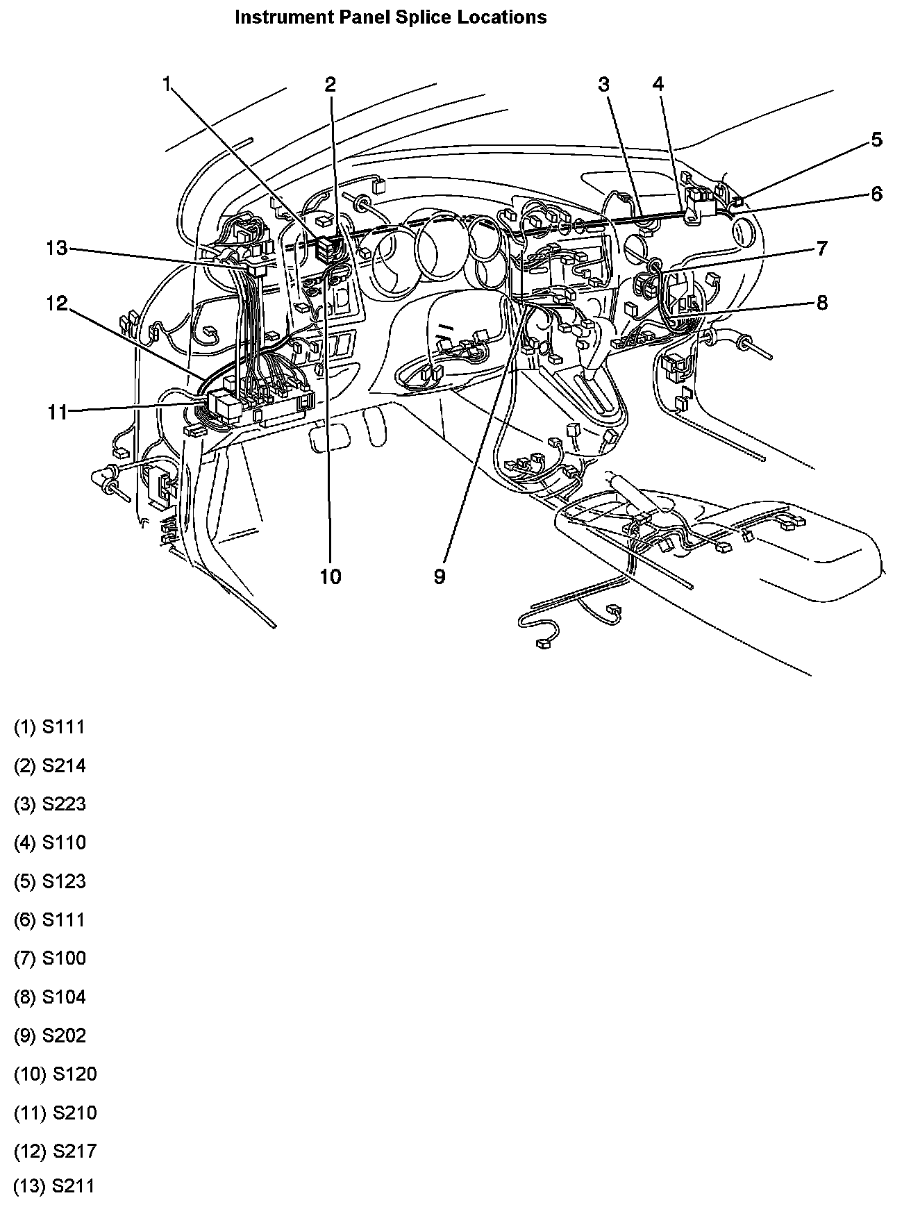 Instrument Panel Splice Locations: