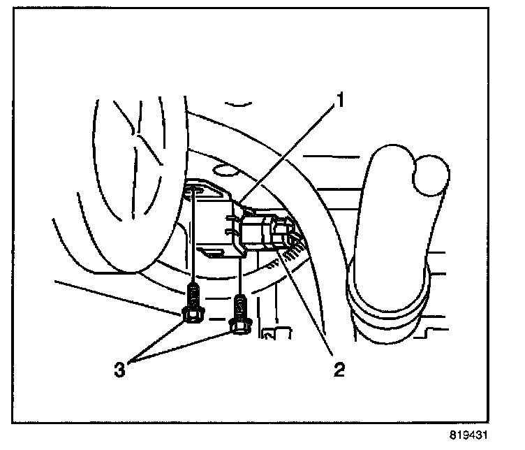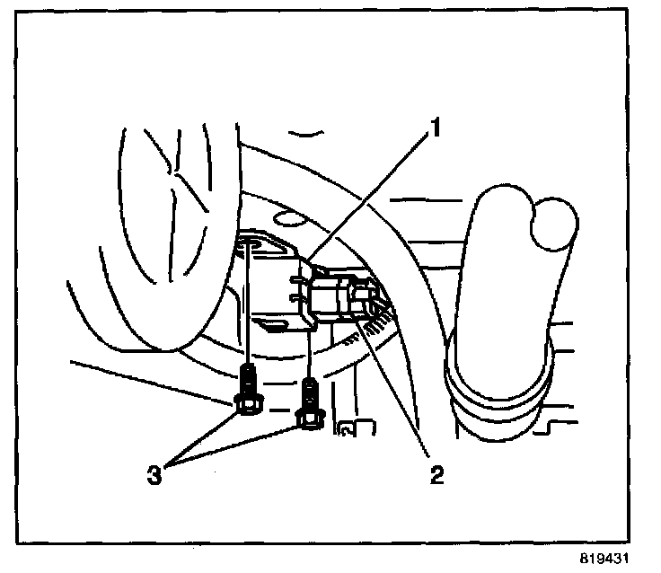 8. Open front hood, and locate the front end discriminating sensor - left electrical connector (1).