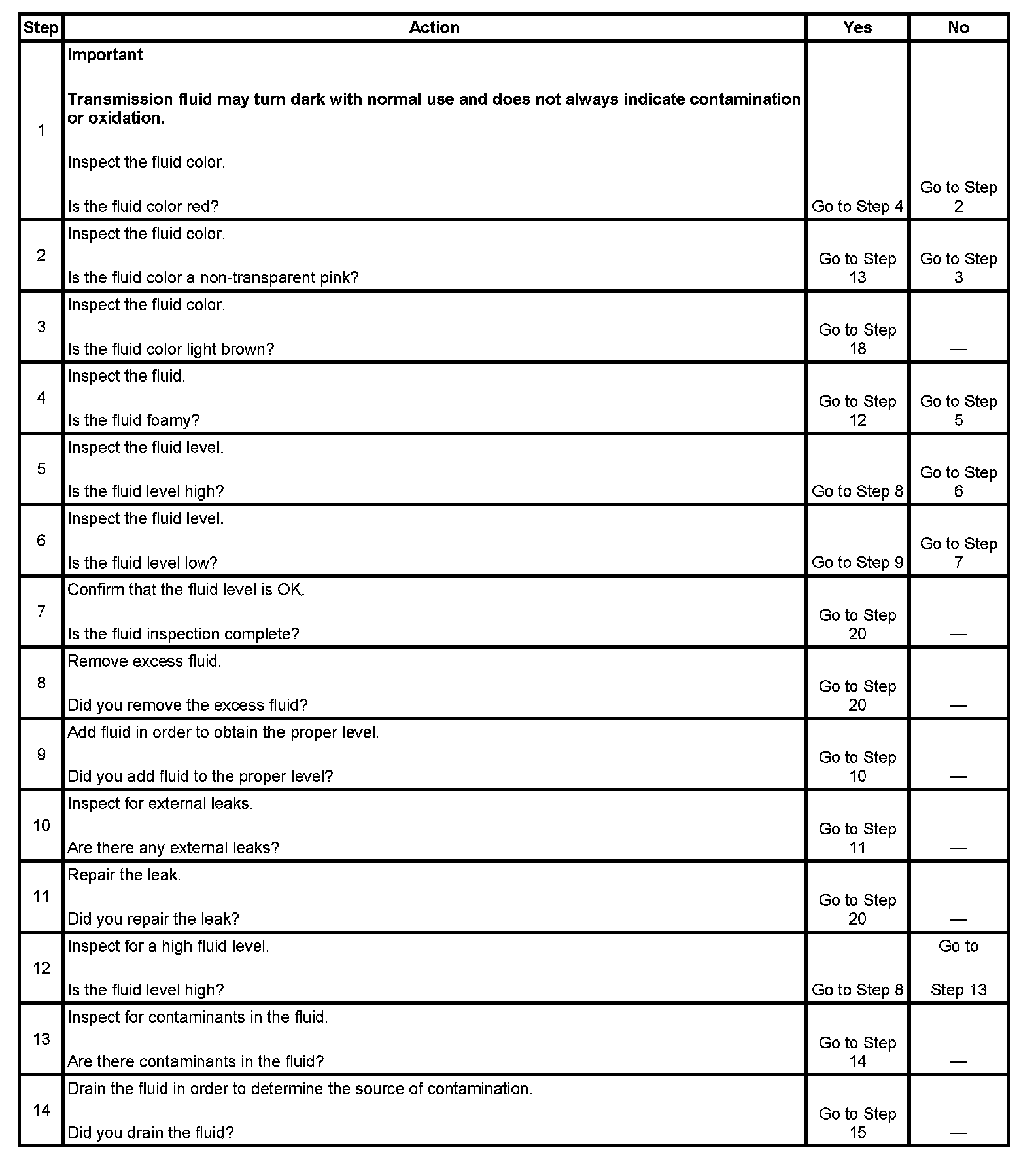 7. Important: The engine and the transmission must be at operating temperature for the transmission to register correctly at the HOT level range.