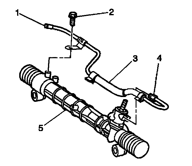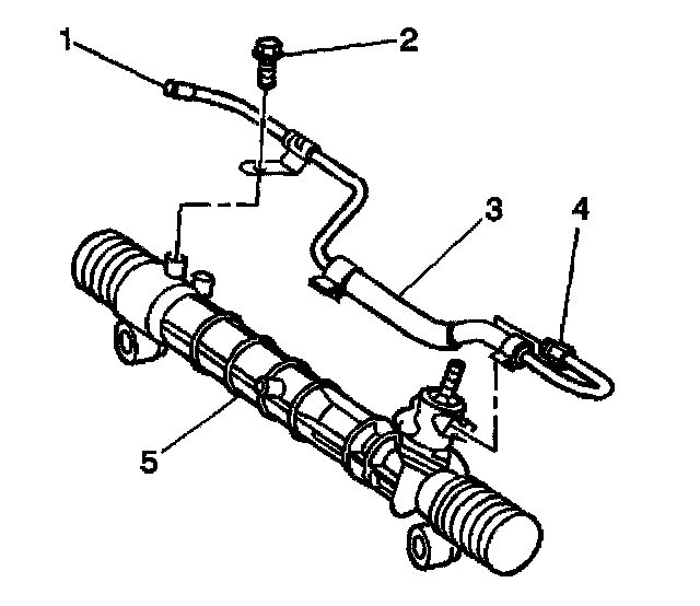 4. Install the bolt (2) in order to retain the hose to the steering gear.