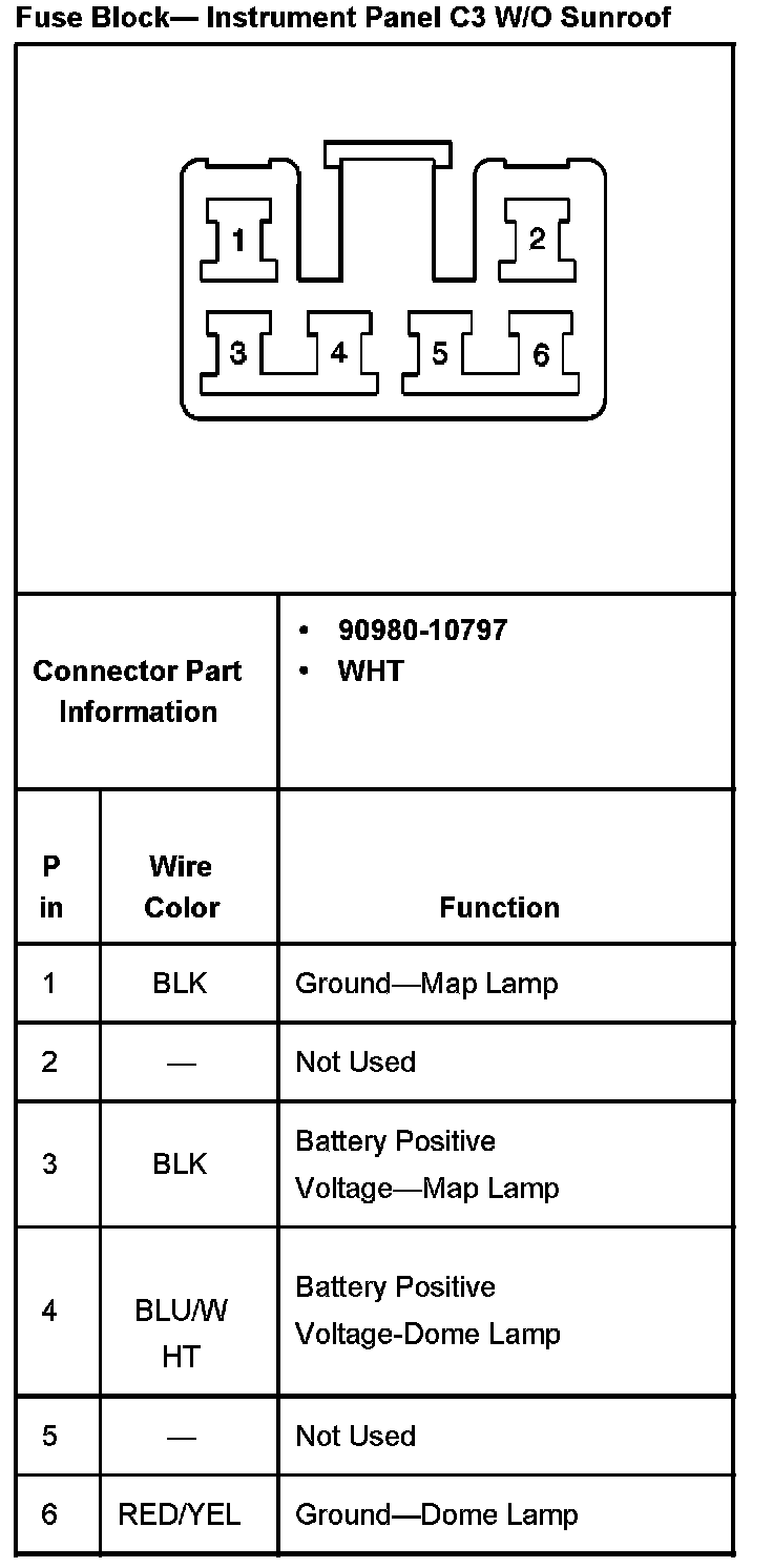 Fuse Block-Instrument Panel C3 Without Sunroof: