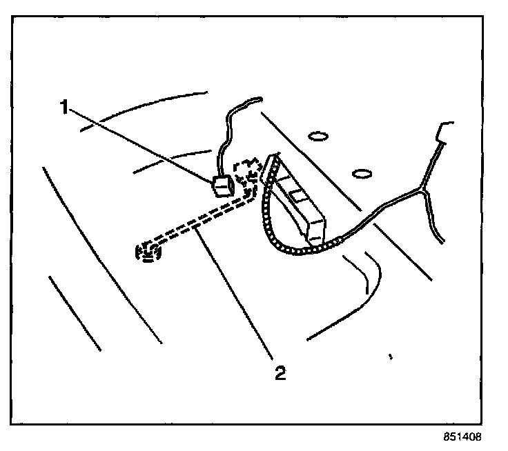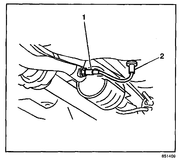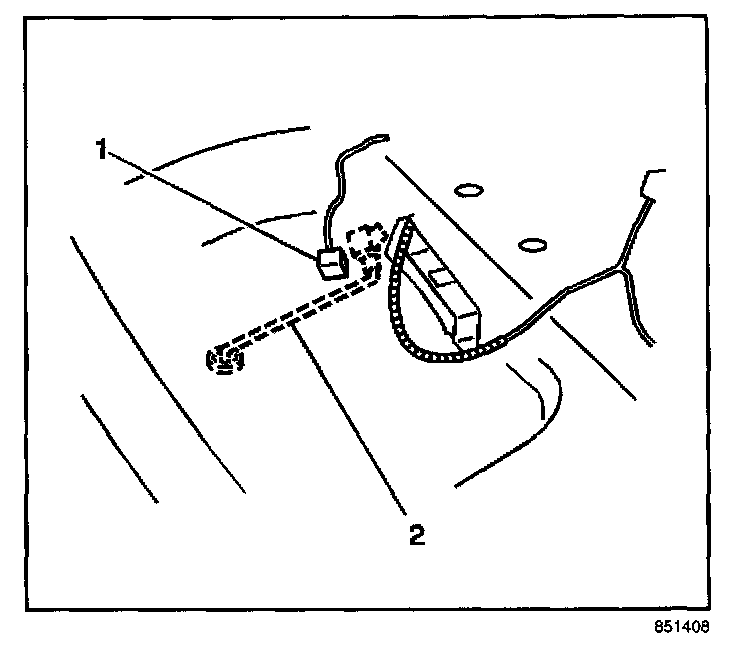 3. Install the HO2S 2 wiring pigtail and body plug (2) into the floor pan.