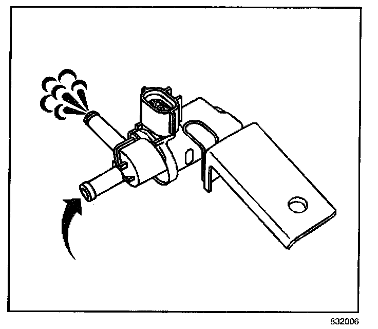 6. Blow air through the upper port of the EVAP vent valve. Air has to flow freely through the lower port.
