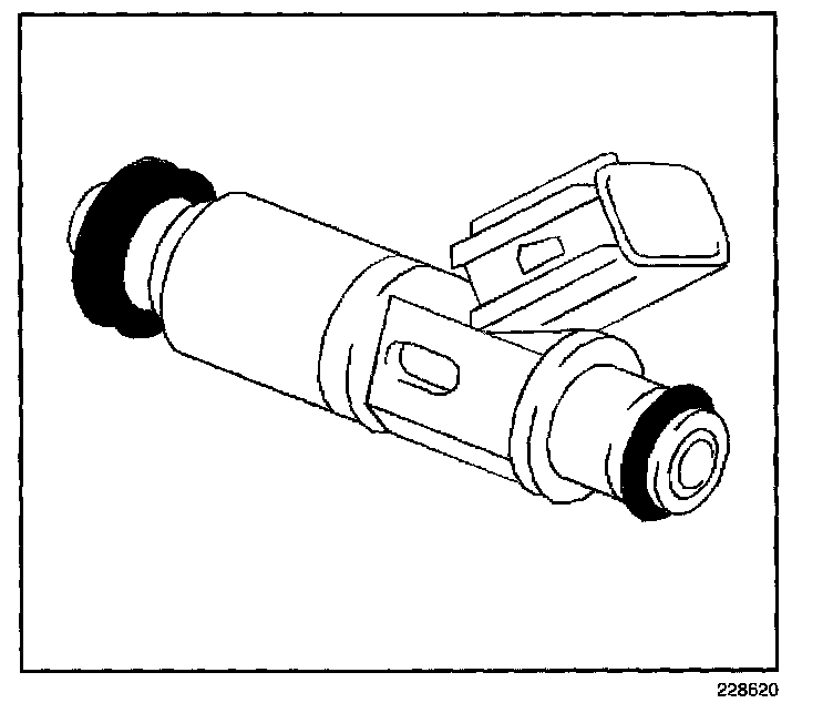 FUEL INJECTORThe fuel injector is an electromagnetic (solenoid) type injection nozzle which injects fuel into the intake port of the cylinder head according to the signals from the powertrain control module (PCM). There are 4 fuel injectors, one for each cylinder, located between the intake manifold and the fuel rail.