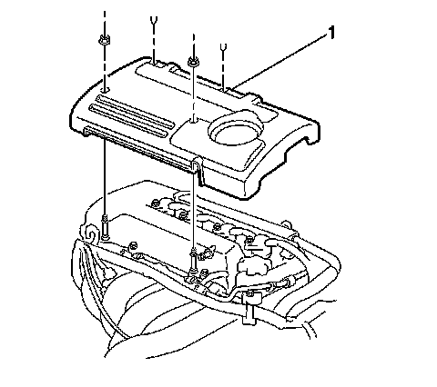 1. Remove the 2 nuts and the 2 retainers from the engine cover (1).