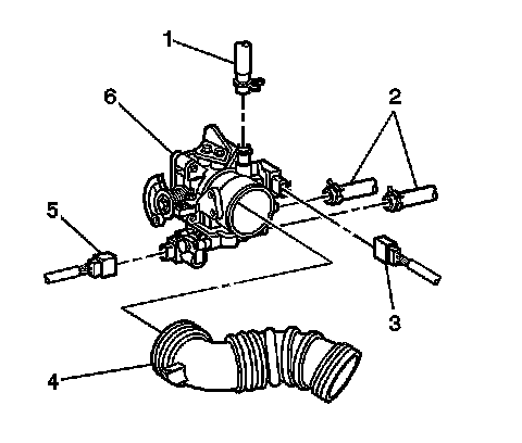 3. Remove the air inlet duct (4) from the throttle body assembly (6).