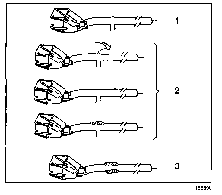 11. Twist together 1 connector wire lead to one deployment wire (1). Secure the connection mechanically.