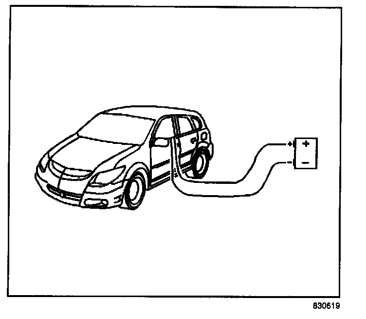 31. Place a power source, 12V minimum/2A minimum, i.e., a vehicle battery, near the shorted end of the harness.