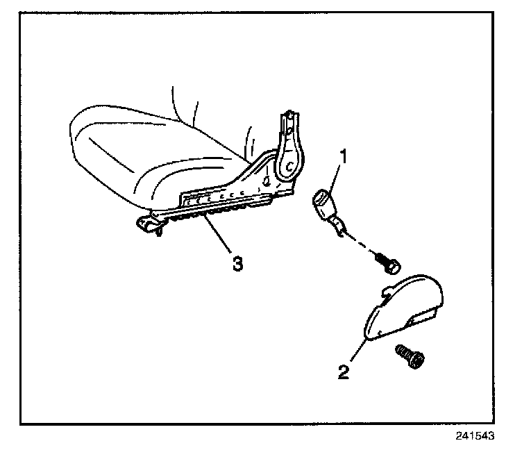 2. Install the inner adjuster finish cover (2) to the front seat. Secure the cover with the screw.